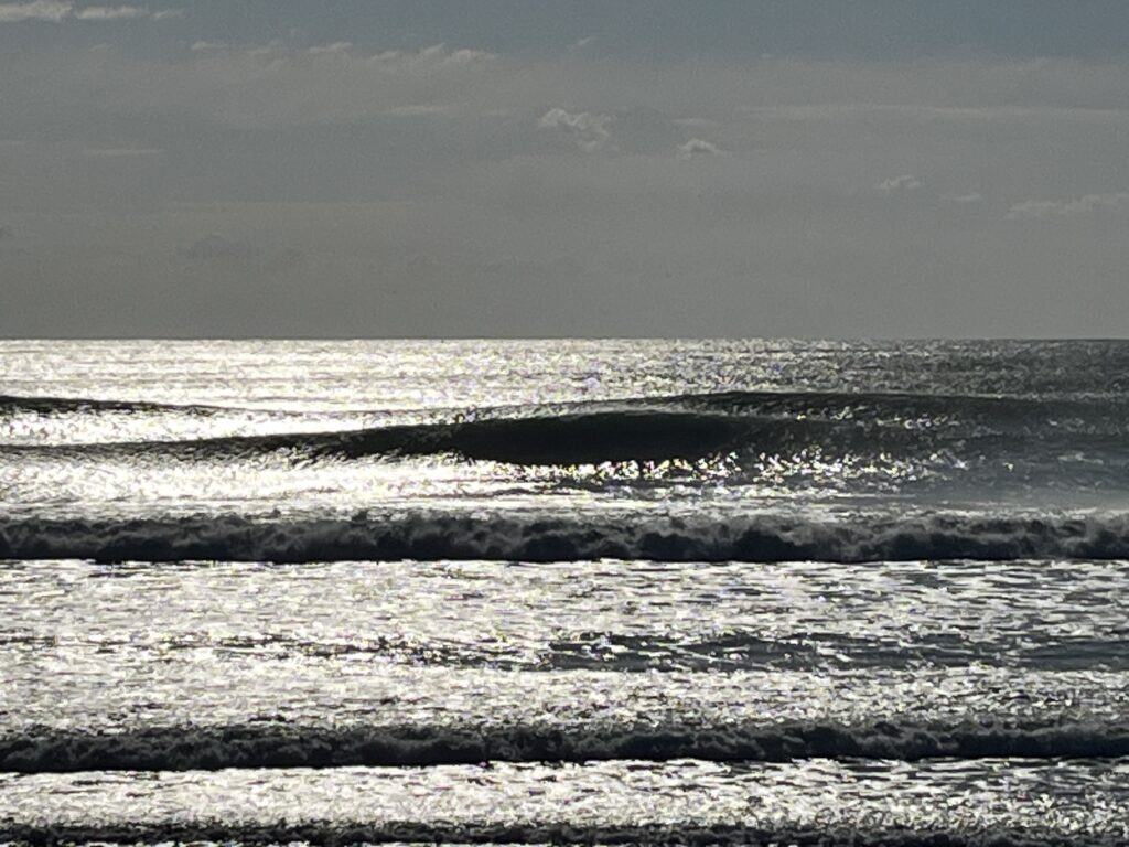 2時間位入ってターンはグーフィの1ターンのみで後はテイクオフオフのみで南に流れあるのでパドルばかりでポジションが難しいかったです。